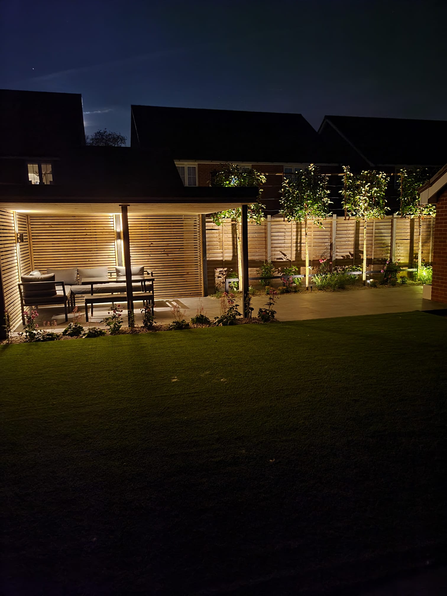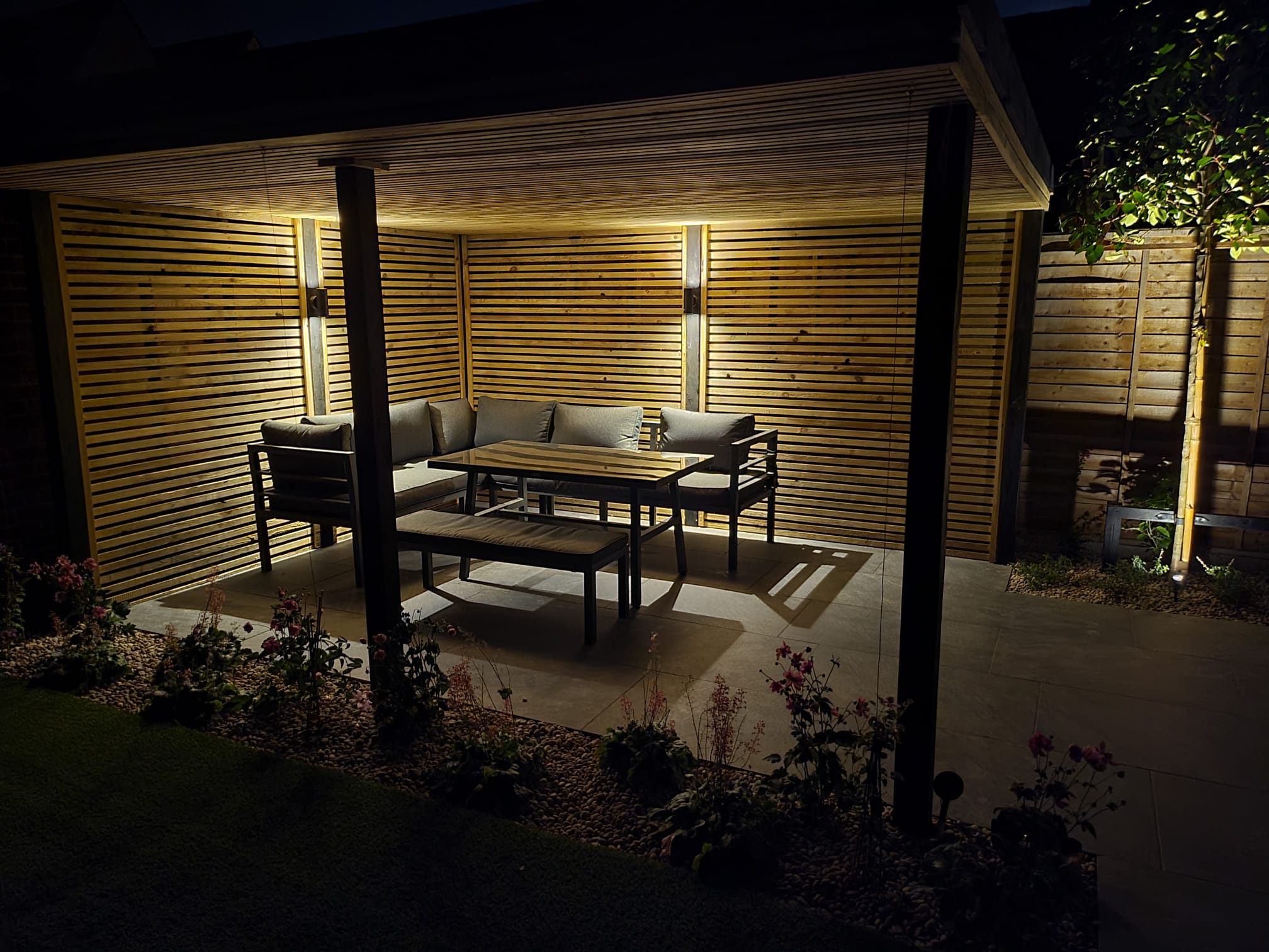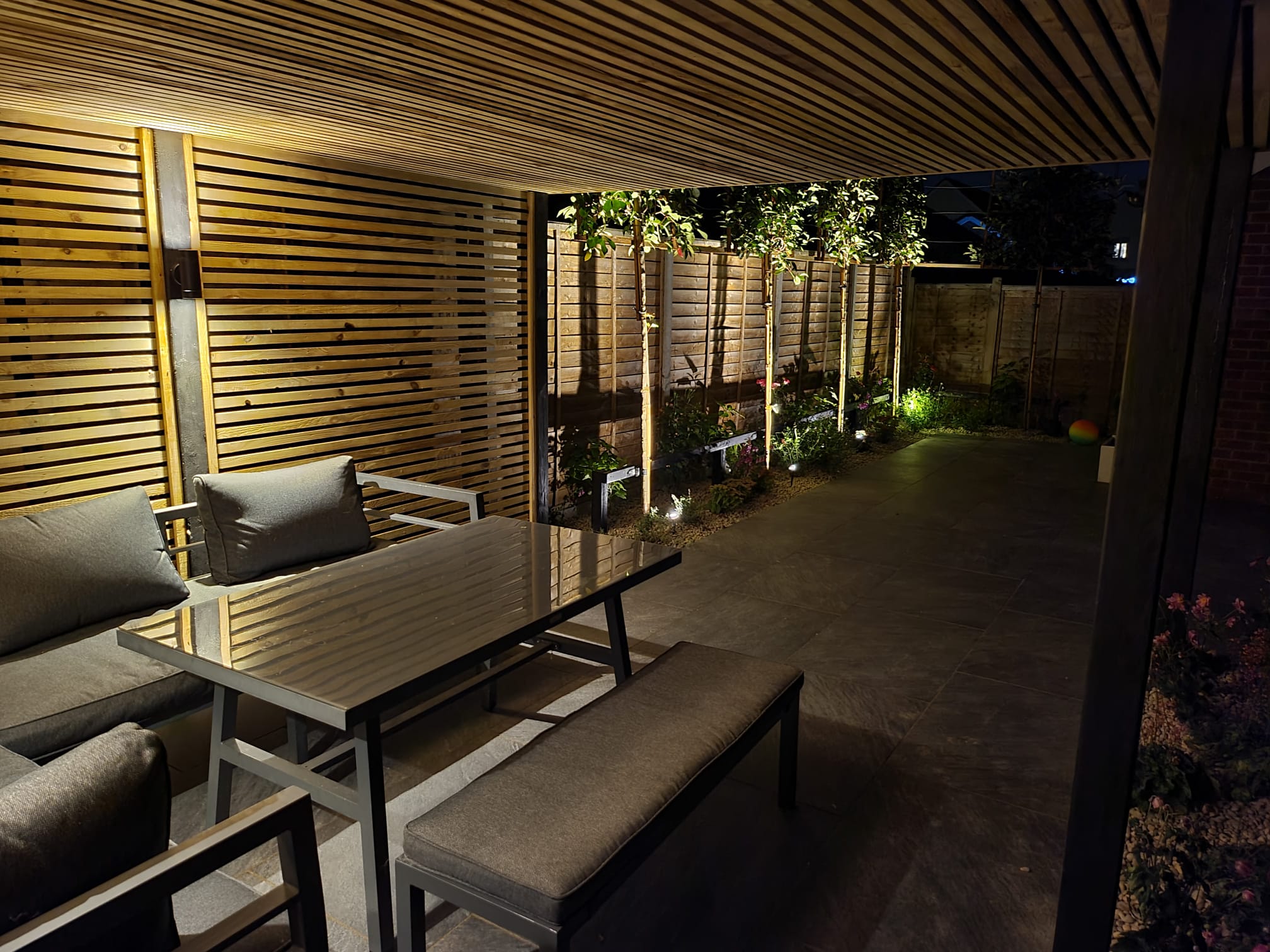 We carried out the installation and design for this project, using Collingwood aluminium spike lights and up and down feature wall lights in the seating area.